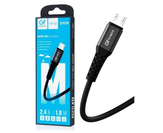 Кабель GFPower 02M USB (m)-microUSB (m) 1.0м 2.4A нейлон черный (1/200/800)