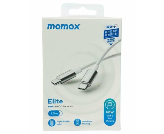 Кабель Momax Elite DC30W USB-C/USB-C 1.5м White