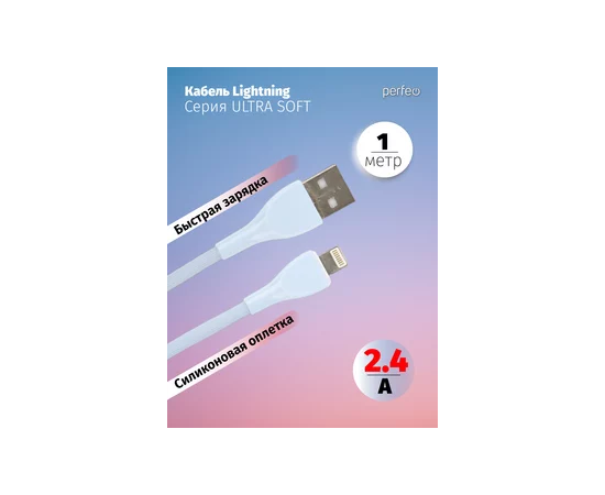 Кабель PERFEO USB A вилка - Lightning вилка, 2.4A, голубой, силикон, длина 1 м., ULTRA SOFT (I4333)