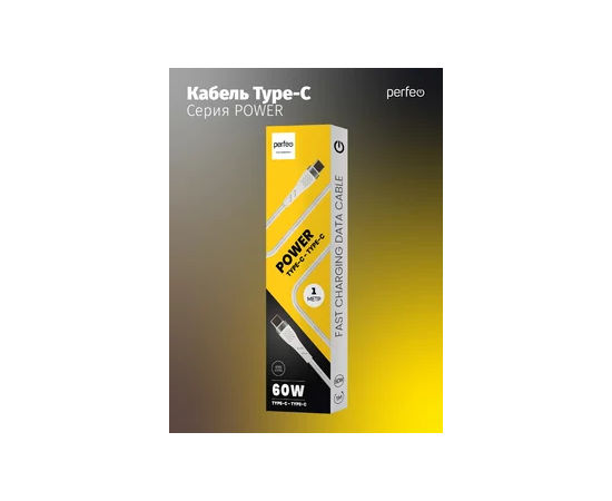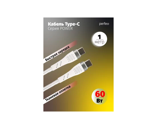 Кабель PERFEO USB C вилка - C вилка, 60W, белый, длина 1 м., POWER (C1104)