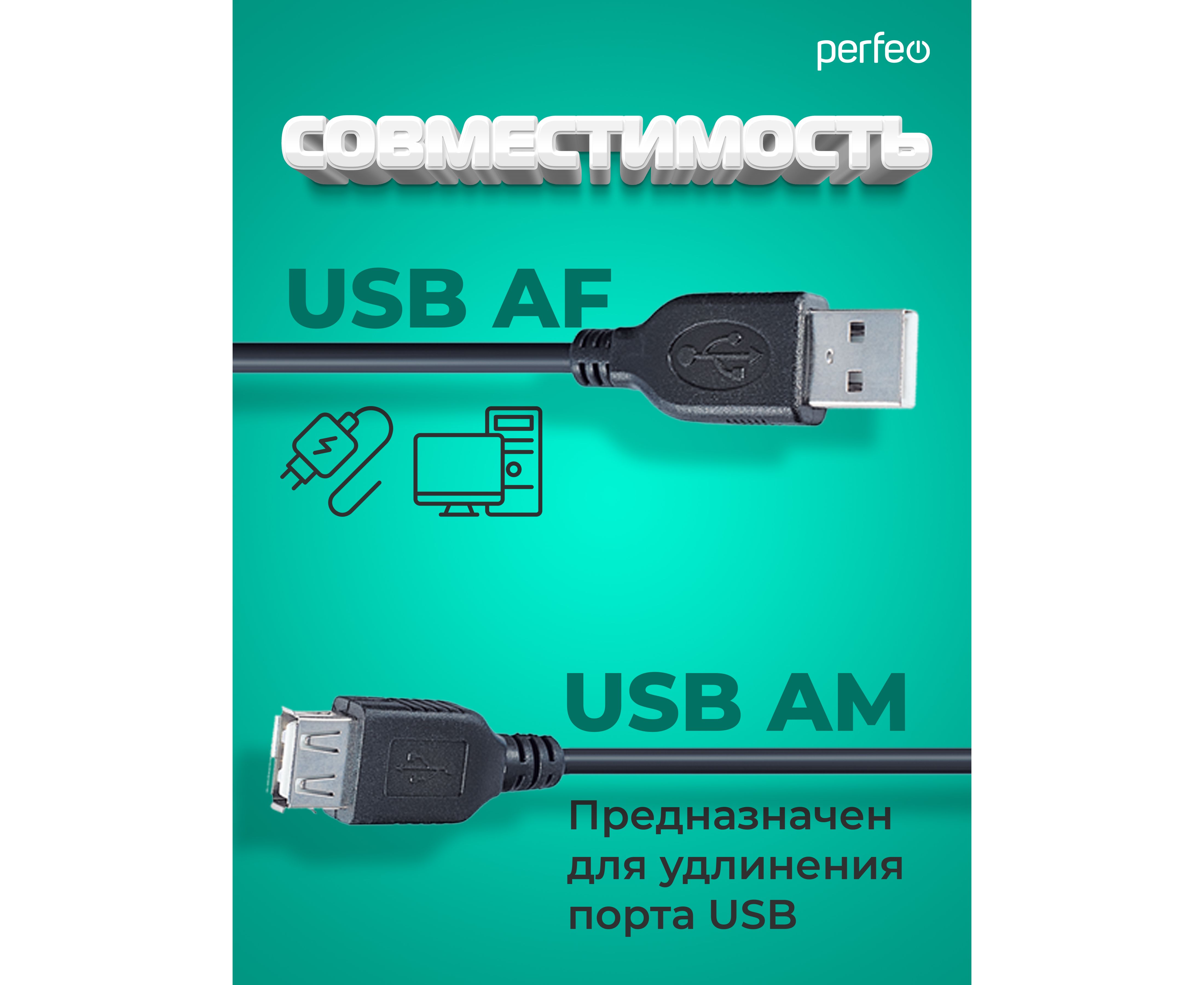 Кабель PERFEO USB2.0 A вилка - А розетка, длина 1 м. (U4502)