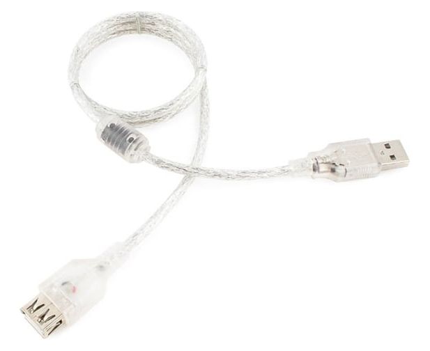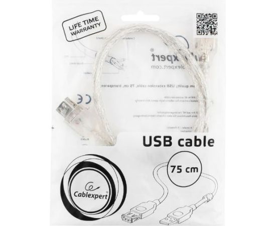 Кабель удлинитель Cablexpert CCF-USB2-AMAF-TR-0.75M USB2.0 Pro, AM/AF, 0,75м, экран, 2 феррит.кольца, прозрачный