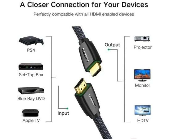Кабель UGREEN HD118 40409 High-End HDMI Cable with Nylon Braid 1.5m Black