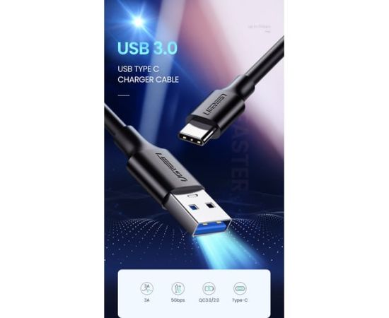Кабель UGREEN US184 (20883) USB 3.0 A Male to Type C Male Cable Nickel Plating 1.5m Black