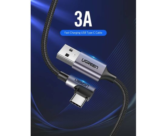 Кабель UGREEN US284 70255 Angled USB-C Male To USB2.0 A Male 3A Data Cable 90°Angle 3m Black