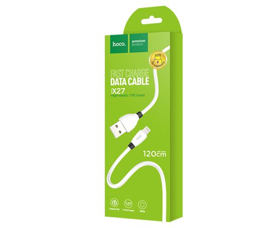 Кабель USB HOCO X27 Excellent USB - Lightning, 2.4А, 1.2 м, белый