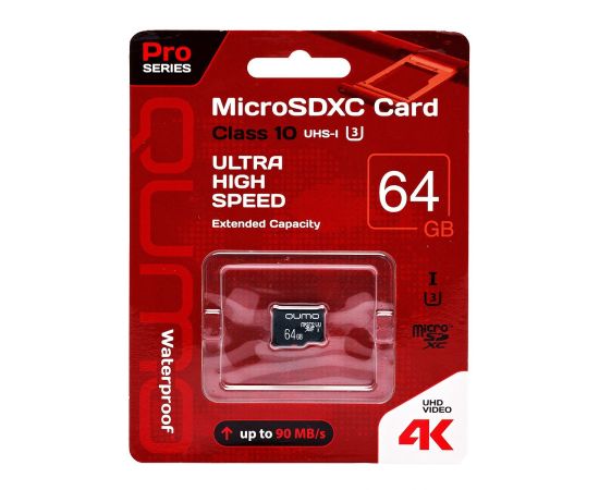 Карта флэш-памяти MicroSD 64 Гб Qumo без SD адаптер Pro seria UHS-1 U3 (208465)