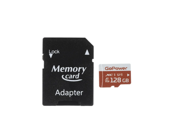 Карта памяти microSD GoPower 128GB Class10 UHS-I (U3) 100 МБ/сек V30 с адаптером