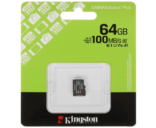 Карта памяти Kingston microSDHC 64GB UHS-I Class 10 U1 A1 Canvas Select Plus (SD адаптер) 100MB/s (SDCS3/64GBSP)
