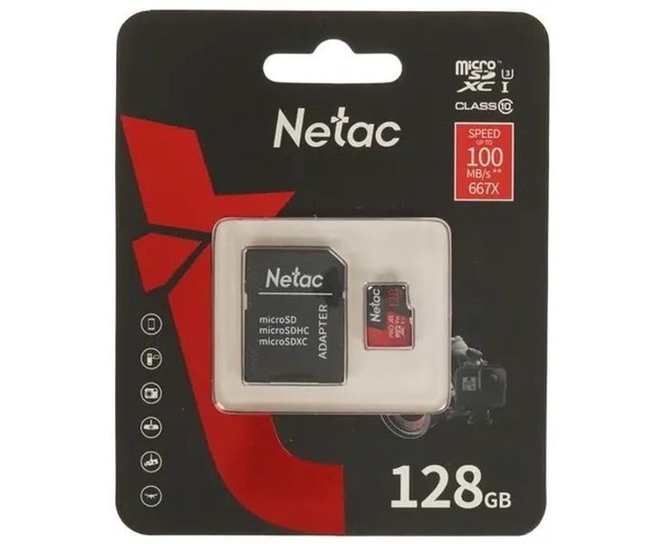 Карта памяти microSDHC Netac P500 PRO (NT02P500PRO-128G-R) 128GB (с SD адаптером) 100MB/s