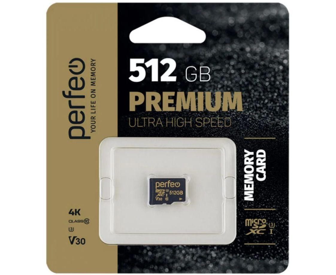 Карта памяти Perfeo microSDXC 512GB High-Capacity (Class 10) UHS-3 V30 без адаптера, (Арт. PF512GMCSX10V30)