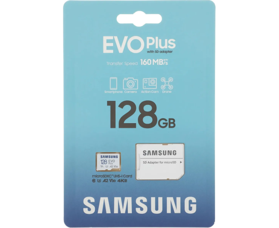 Карта памяти Samsung EVO Plus объемом 128 Гб - это надежное и высококачественное устройство, которое обеспечит вам большой запас места для хранения фотографий, видео, музыки и других файлов.