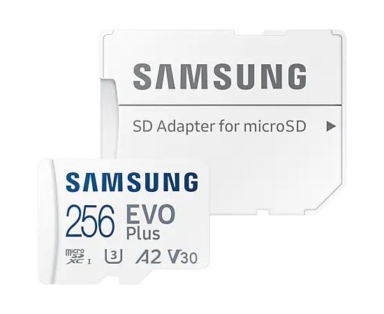 Карта памяти Samsung Evo Plus (MB-MC256SA/EU) 256GB microSDXC Class 10, A2, V30, UHS-I, W 90 МБ/с, R 160 МБ/с, адаптер на SD