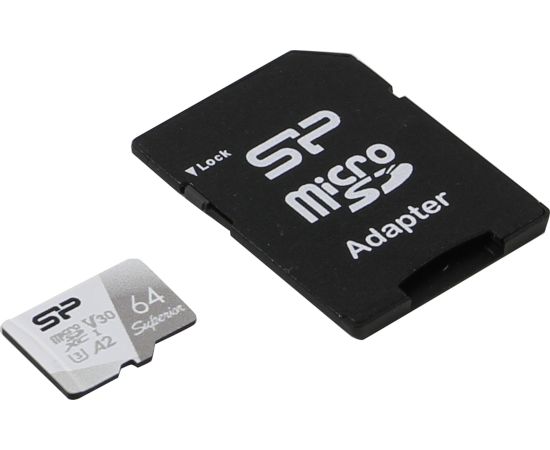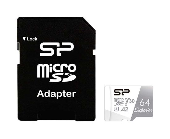Карта памяти Silicon Power SP064GBSTXDA2V20SP microSD 64GB Superior Pro A2 microSDXC Class 10 UHS-I U3 Colorful 100/80 Mb/s (SD адаптер)