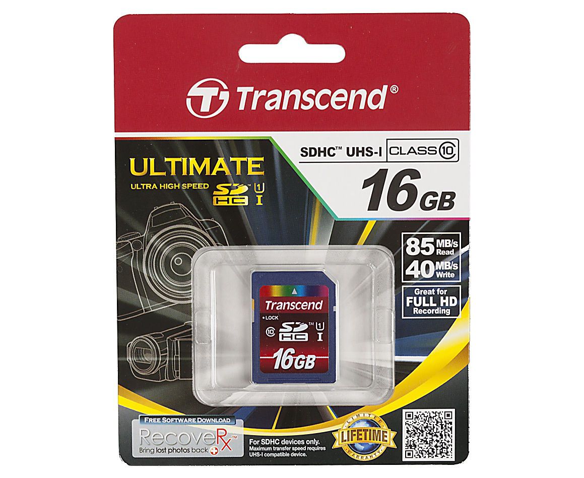 Карта памяти SDHC Transcend Ultimate, 16 Гб, UHS-I Class 10 U1, чтение: до 90Мб/с
