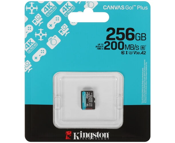 Карта памяти Kingston Canvas Go! Plus microSDXC 256 ГБ [SDCG4/256GB] соответствует классам скорости A2, Class 10, UHS Class 3 и Video Class 30. Изделие предназначено для смартфонов, фотокамер и других устройств.