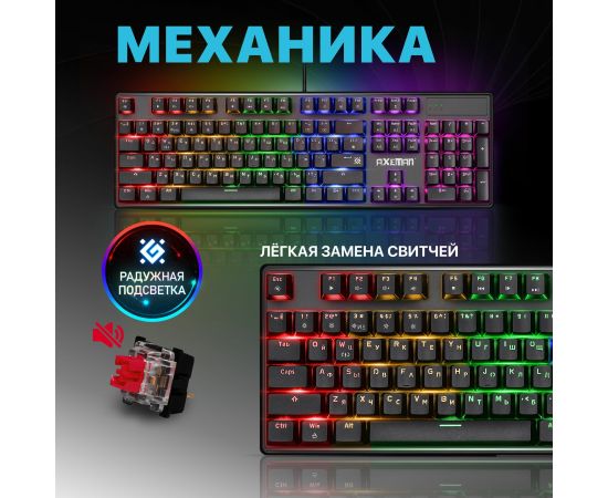 Клавиатура механическая DEFENDER Axeman GK-302 RU,Rainbow,104+FN,кр.свитчи