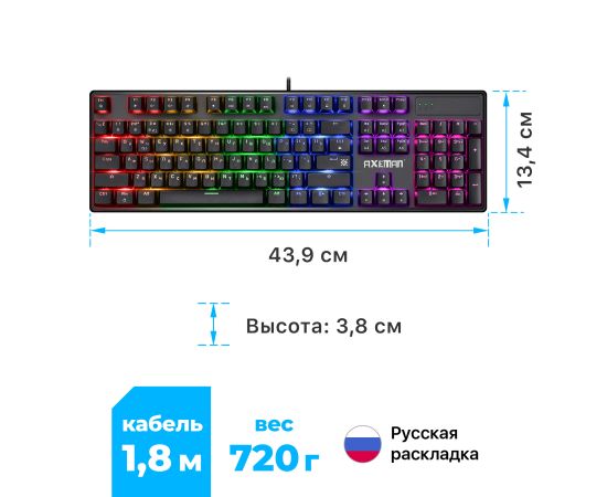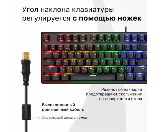 олноразмерная проводная механическая клавиатура на тихих красных свитчах Outemu. Ключевые достоинства модели: 25 режимов радужной подсветки, технология anti-ghost (все клавиши), возможность замены свитчей благодаря технологии Hot Swap. В комплект входят три дополнительных свитча, а также и пуллеры для кейкапов и свитчей.