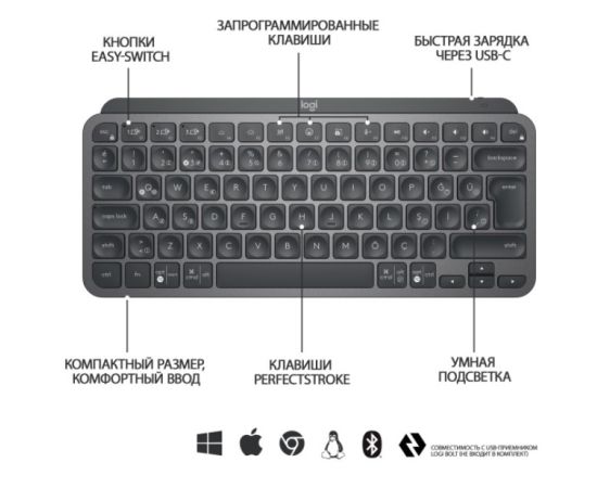 Клавиатура LOGITECH MX Keys Mini Minimalist Wireless Illuminated Keyboard графит 920-010501