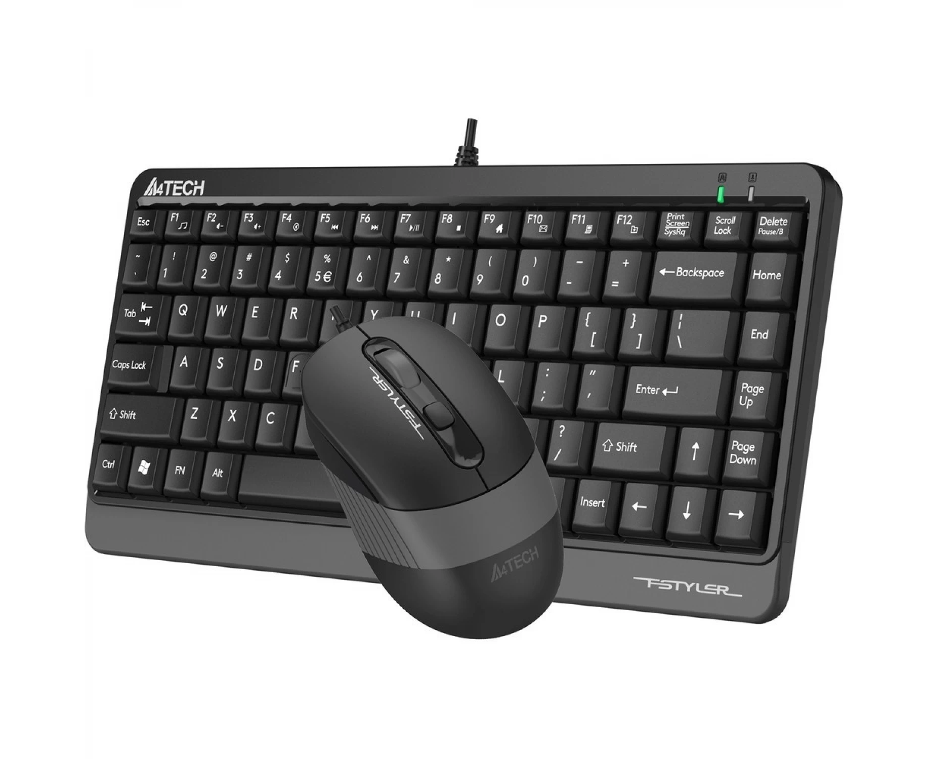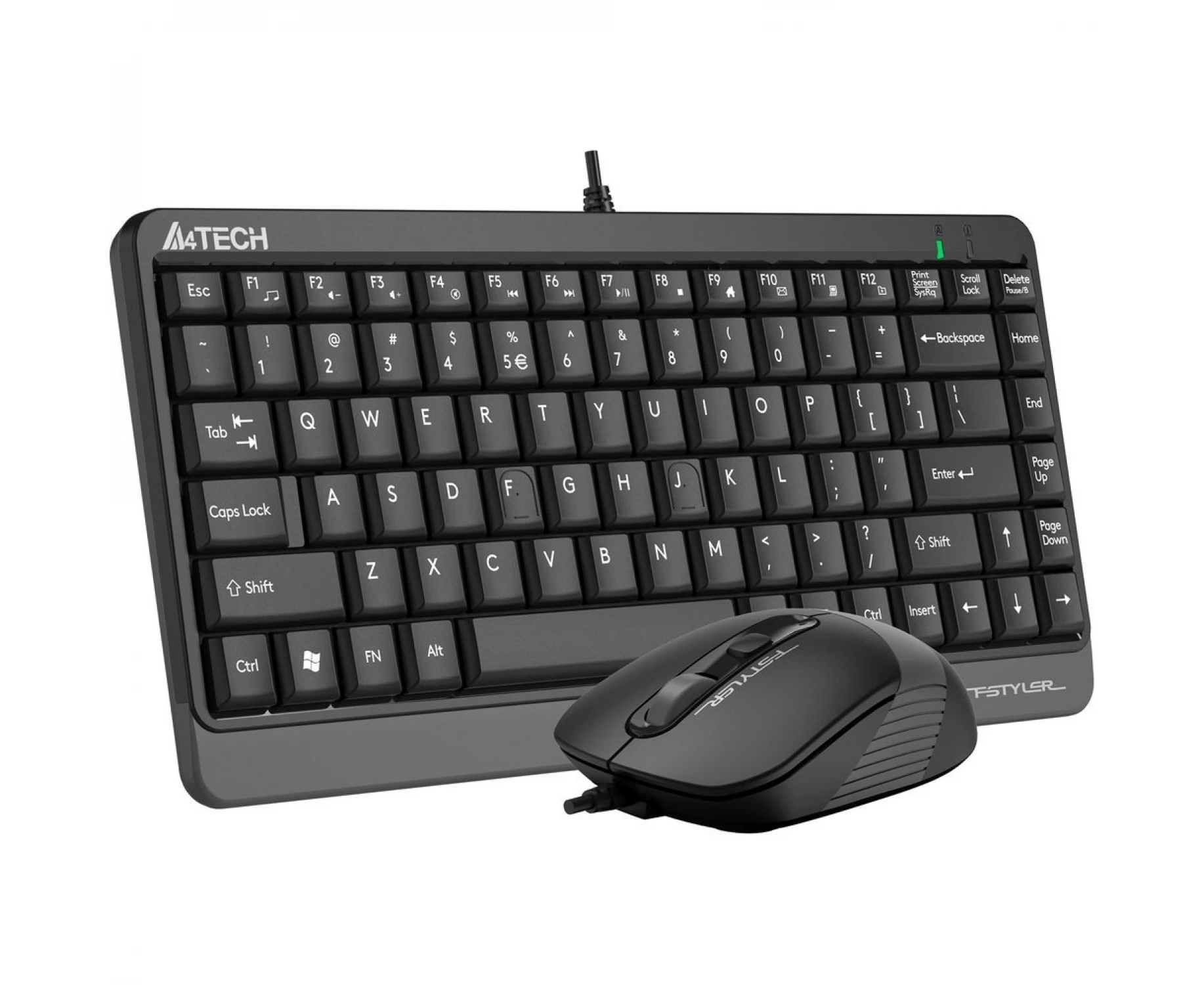 Комплект клавиатура+мышь A4Tech Fstyler F1110 подключается к ПК с помощью кабелей, через разъемы USB. В основе клавиатуры лежит мембранный механизм, обеспечивающий легкое и бесшумное нажатие каждой клавиши. Мышь из комплекта оснащена светодиодным оптическим сенсором, благодаря которому движения курсора на экране будут максимально точными. У мыши всего 4 кнопки, расположенные симметрично, что делает удобной работу с ней и правой, и левой рукой.