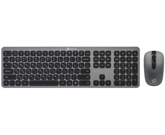 Клавиатура + мышь OKLICK 300M клав:серый мышь:серый/черный USB беспроводная slim