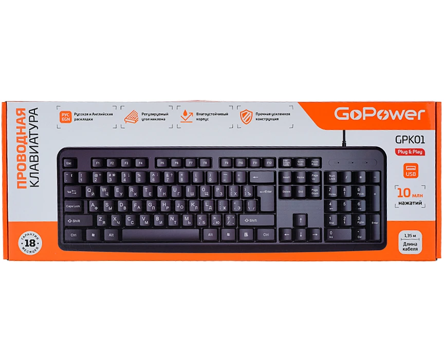 Клавиатура проводная GoPower GPK01 классическая USB 1.35м черный (1/20)