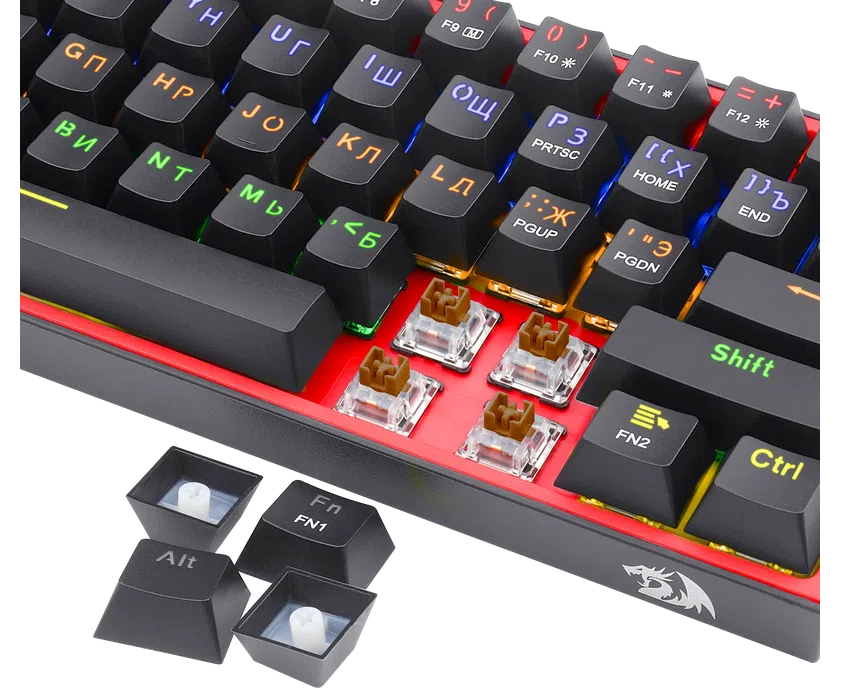 Клавиатура REDRAGON Fizz, RU,радужн,черный,61кн (70671)