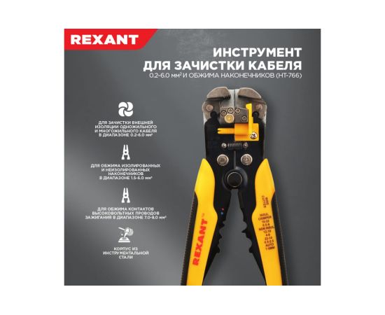 Клещи для зачистки кабеля и обжима наконечников REXANT ht-766 (12-4005)