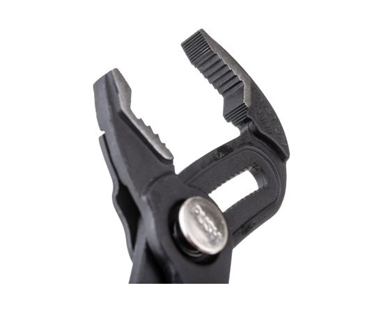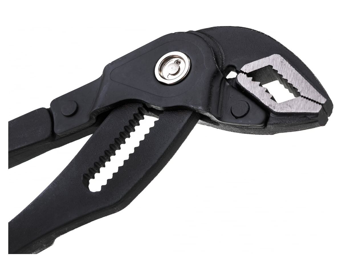 Переставные клещи с механизмом быстрой фиксации с максимальным захватом 50 мм. Инструмент выполнен из прочной и износостойкой стали.