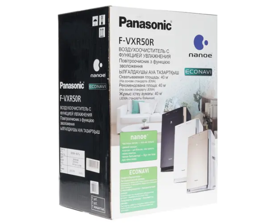 Климатический комплекс Panasonic F-VXR50R-N, выполненный в корпусе компактных размеров золотистого цвета, предназначен для тщательной очистки и увлажнения воздуха в помещении площадью до 40 м². Комбинированный фильтр HEPA, сочетающий в себе катехиновый антивирусный, антибактериальный и антиаллергенный фильтры, устраняет бактерии, микробы, аллергены и другую пагубную микрофлору. Встроенный ионизатор насыщает воздух отрицательно заряженными ионами и устраняет волновое воздействие от бытовой техники на организм человека. Среди других особенностей отмечаются функции циркуляции 3D и Mega Catcher (зона очистки максимального загрязнений от пола), а также режим ECO. Панель с электронными кнопками и LED-подсветка с датчиком освещенности гарантируют простое управление комплексом Panasonic F-VXR50R-N.