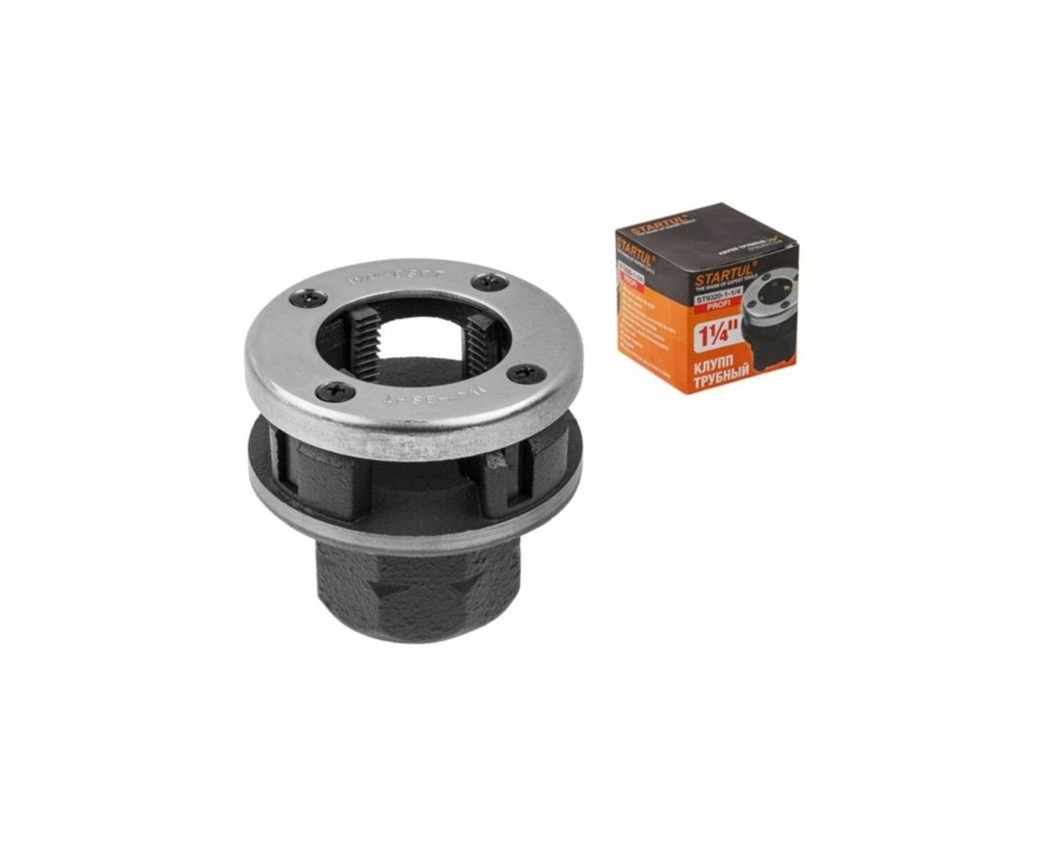 Трубный клупп STARTUL 1 1/4 ST9320-1-1/4 предназначен для нарезания наружной трубной конической резьбы стандарта BSPT. Резцы выполнены из качественной инструментальной стали. Хромовое покрытие защищает инструмент от коррозии. Направление резьбы - правое.