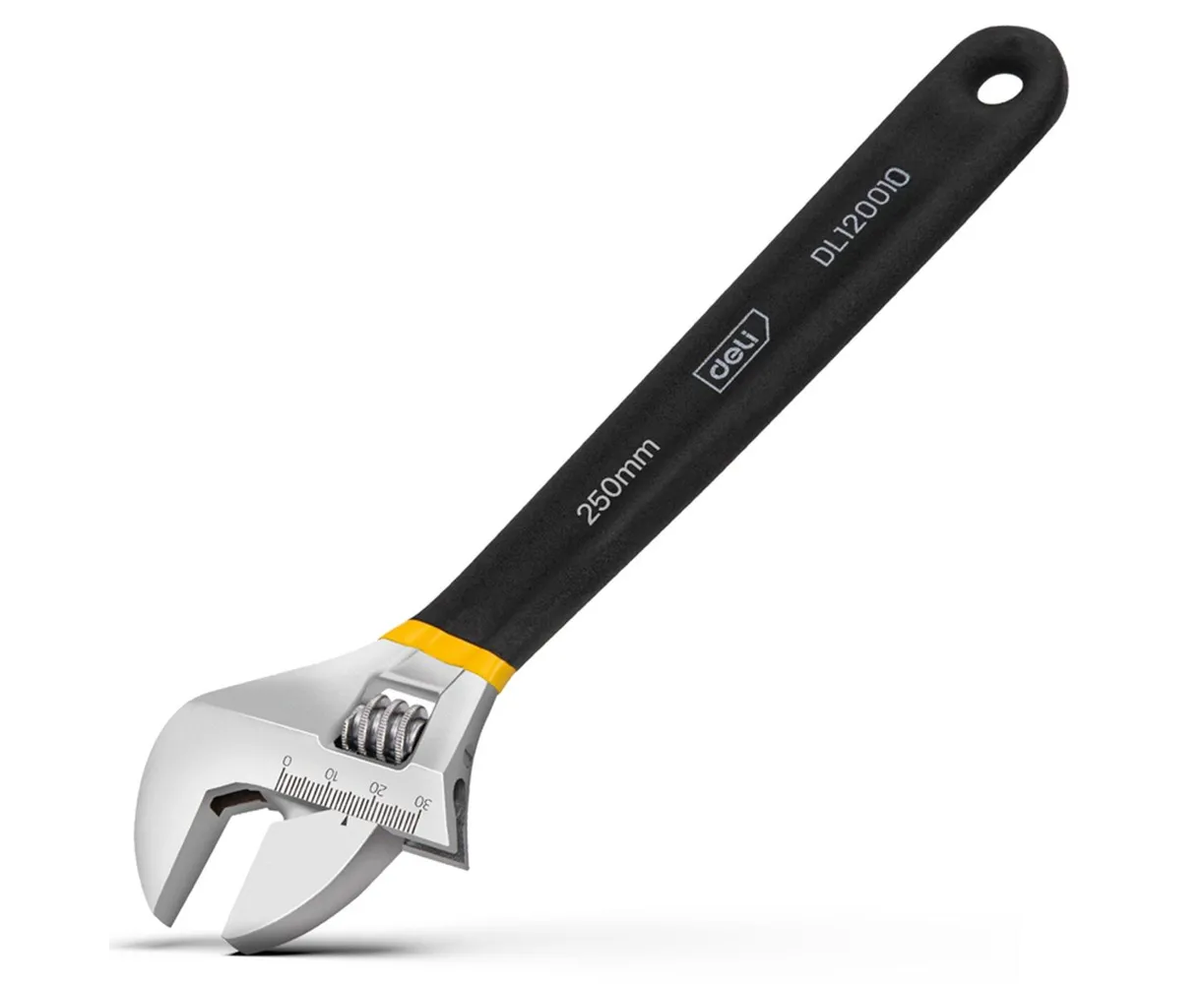 Ключ разводной Deli DL120010 250мм, противоскользящая обливная ручка, диапазон захвата 0-32мм
