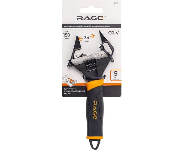 Ключ разводной RAGE By VIRA 311111 с ультратонкими губками 150 мм