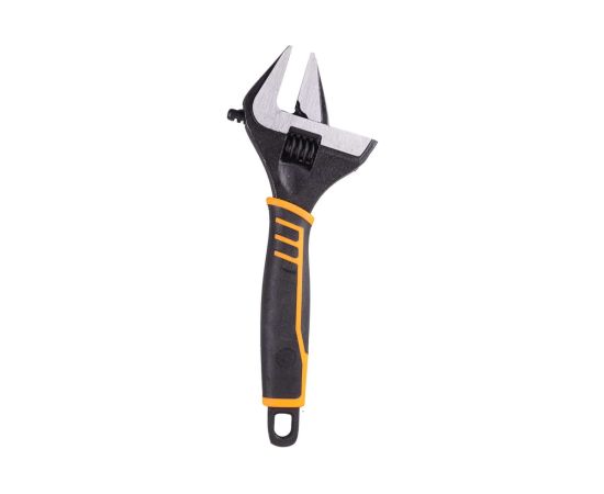 Разводной ключ 10" фосфатированный с увеличенным зевом и тонкими губками для работы в труднодоступных местах. Выполнен из хром-ванадиевой стали, твердостью 40-50 HRC с фосфатированным покрытием, двухкомпонентная рукоятка. Длина ключа составляет 250 мм, расстояние между губками 53 мм.