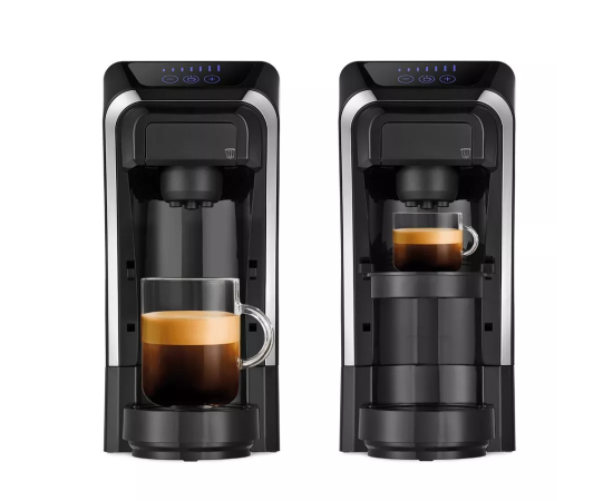 Благодаря адаптерам кофеварка подходит для капсул типа Nespresso Original и Dolce Gusto, а также для молотого кофе. Она прекрасно совмещает в себе все преимущества каждого типа кофеварок и готовит под давлением 20 бар.
