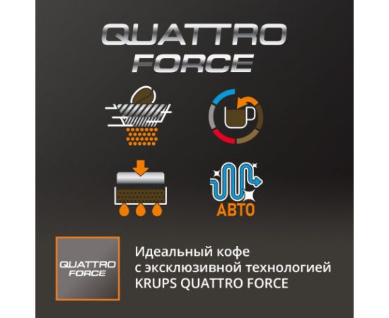 Эксклюзивная технология KRUPS Quattro Force оптимизирует процесс приготовления кофе на всех этапах – от идеального помола до приготовления и очистки, – позволяя каждый раз получать ароматный и насыщенный кофе профессионального качества.