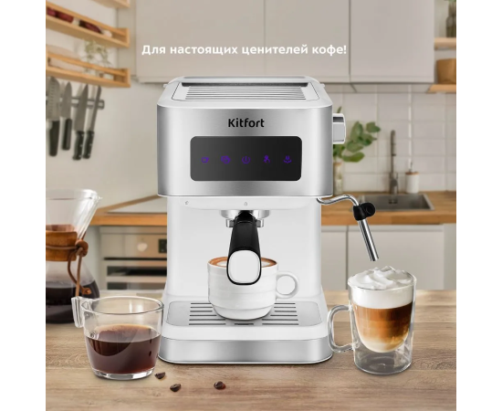 Кофеварка рожковая Kitfort КТ-7139 белый/нерж
