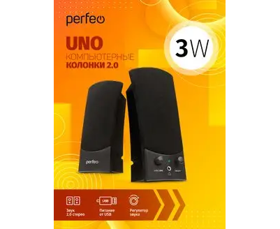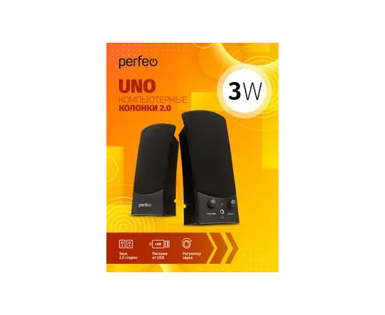 Колонки Perfeo"UNO" 2.0, мощность 2х1.5 Вт (RMS), цвет чёрный, USB