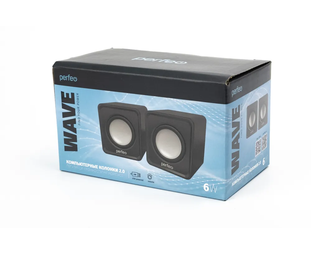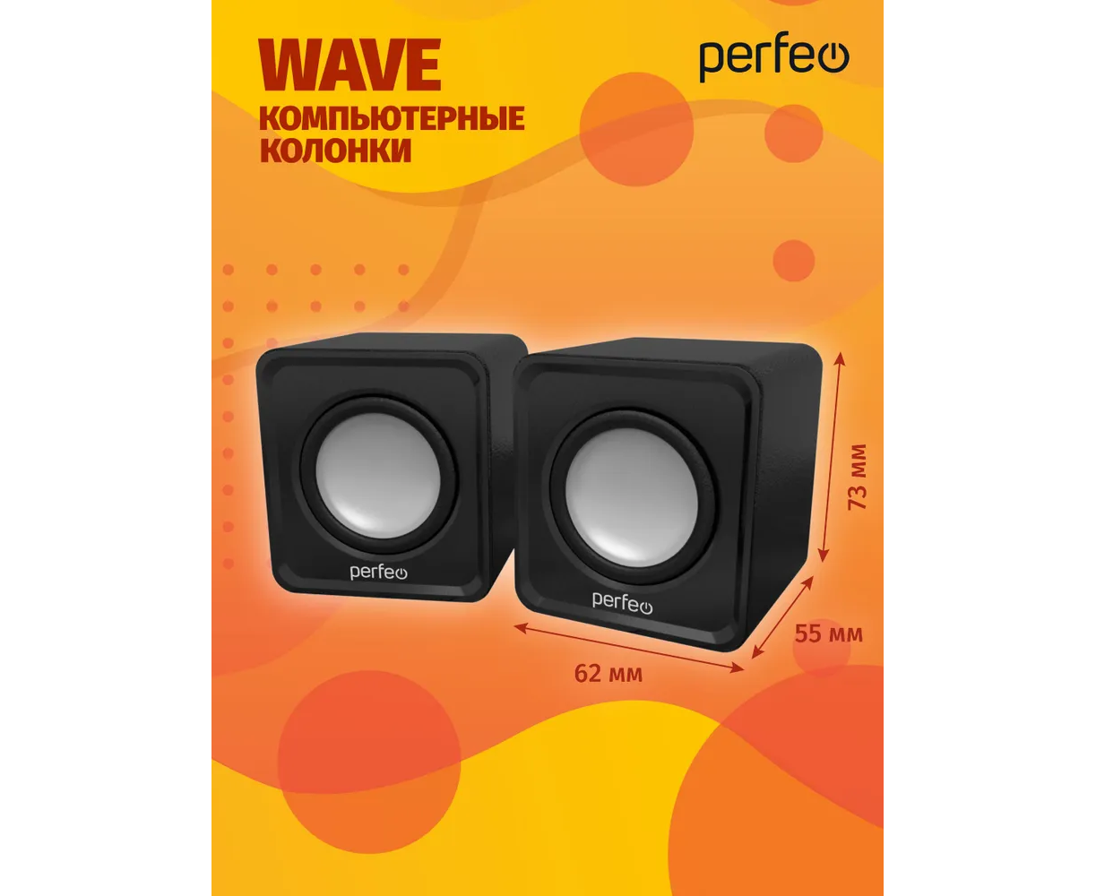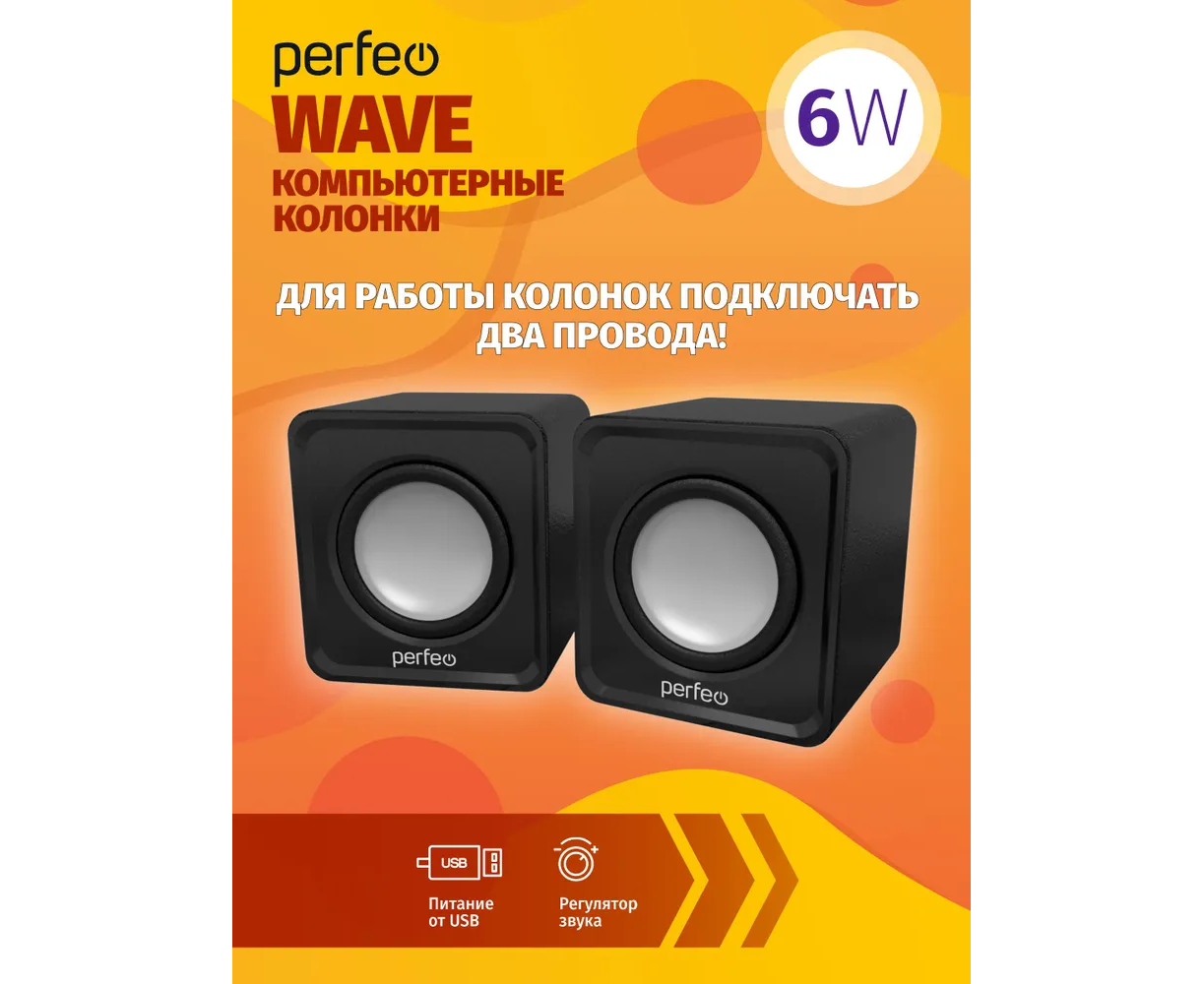 Колонки Perfeo"WAVE" 2.0, мощность 2х3Вт (RMS), цвет чёрный, USB