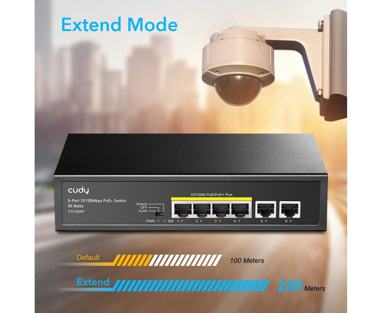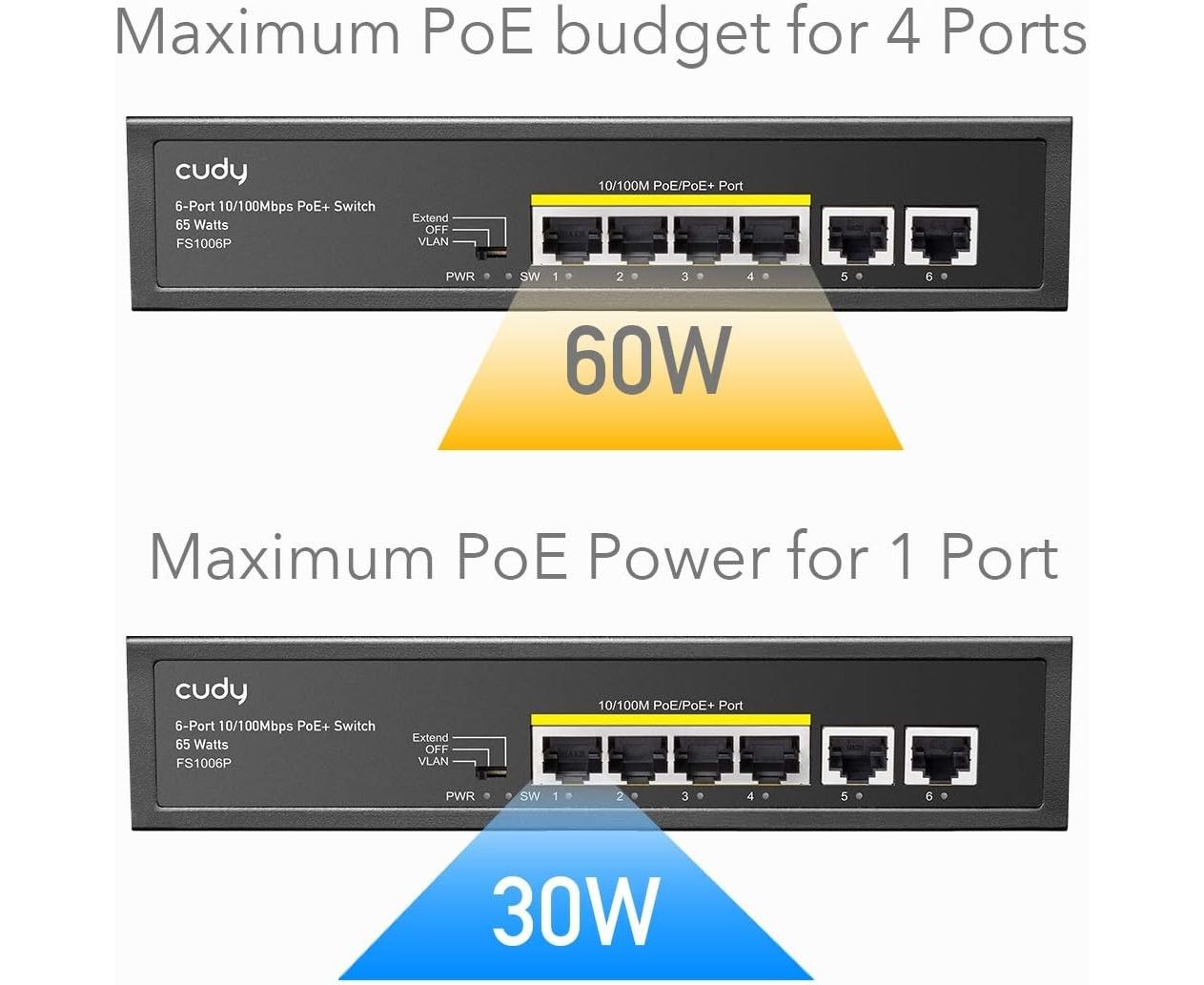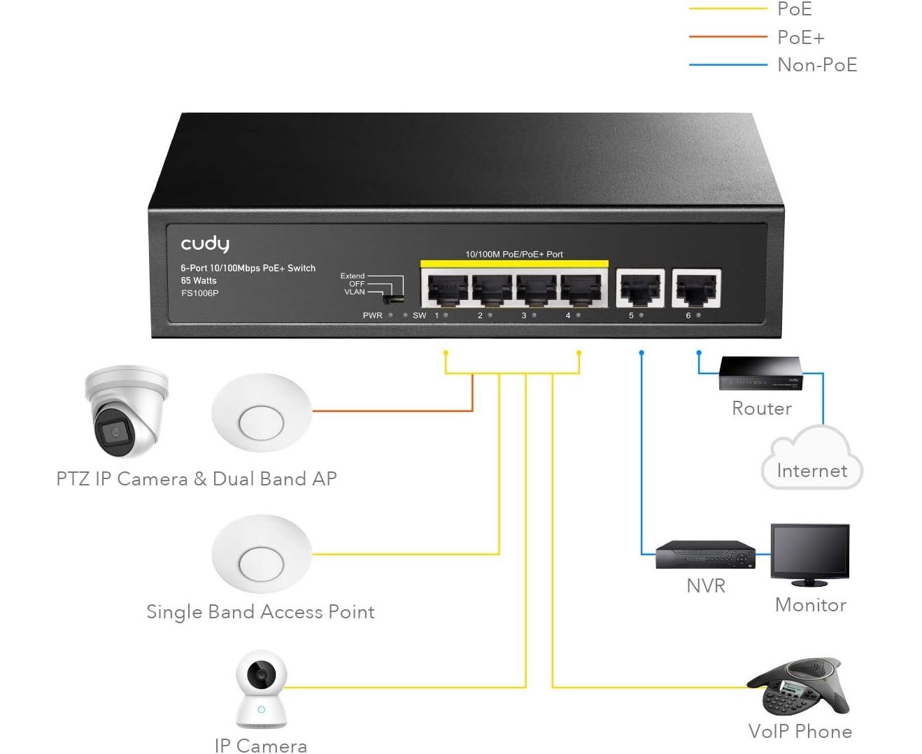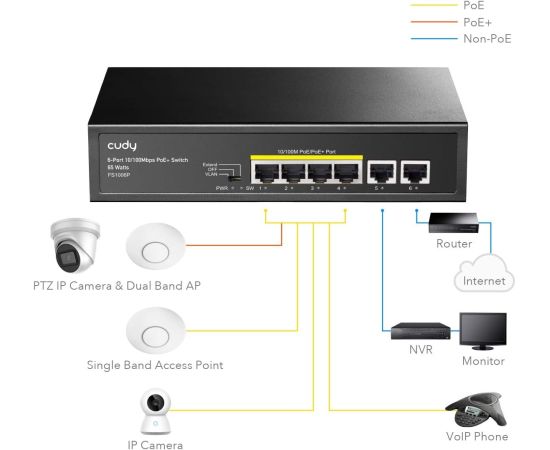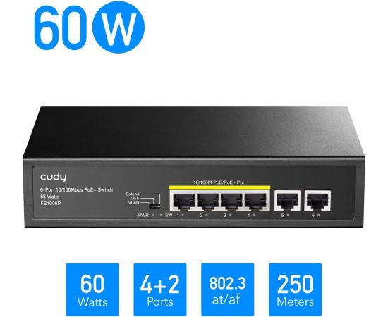 Коммутатор неуправляемый Cudy FS1006P (L2) 6x100Мбит/с 4PoE+ 60W