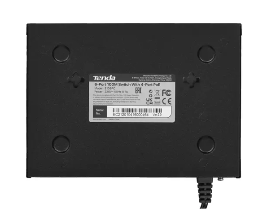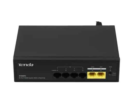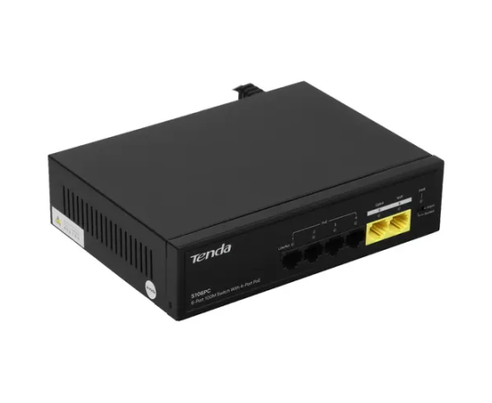 Коммутатор неуправляемый PoE Tenda S106PC 6 портов, 5x100Мбит/с, PoE 4х до 30Вт, настольный