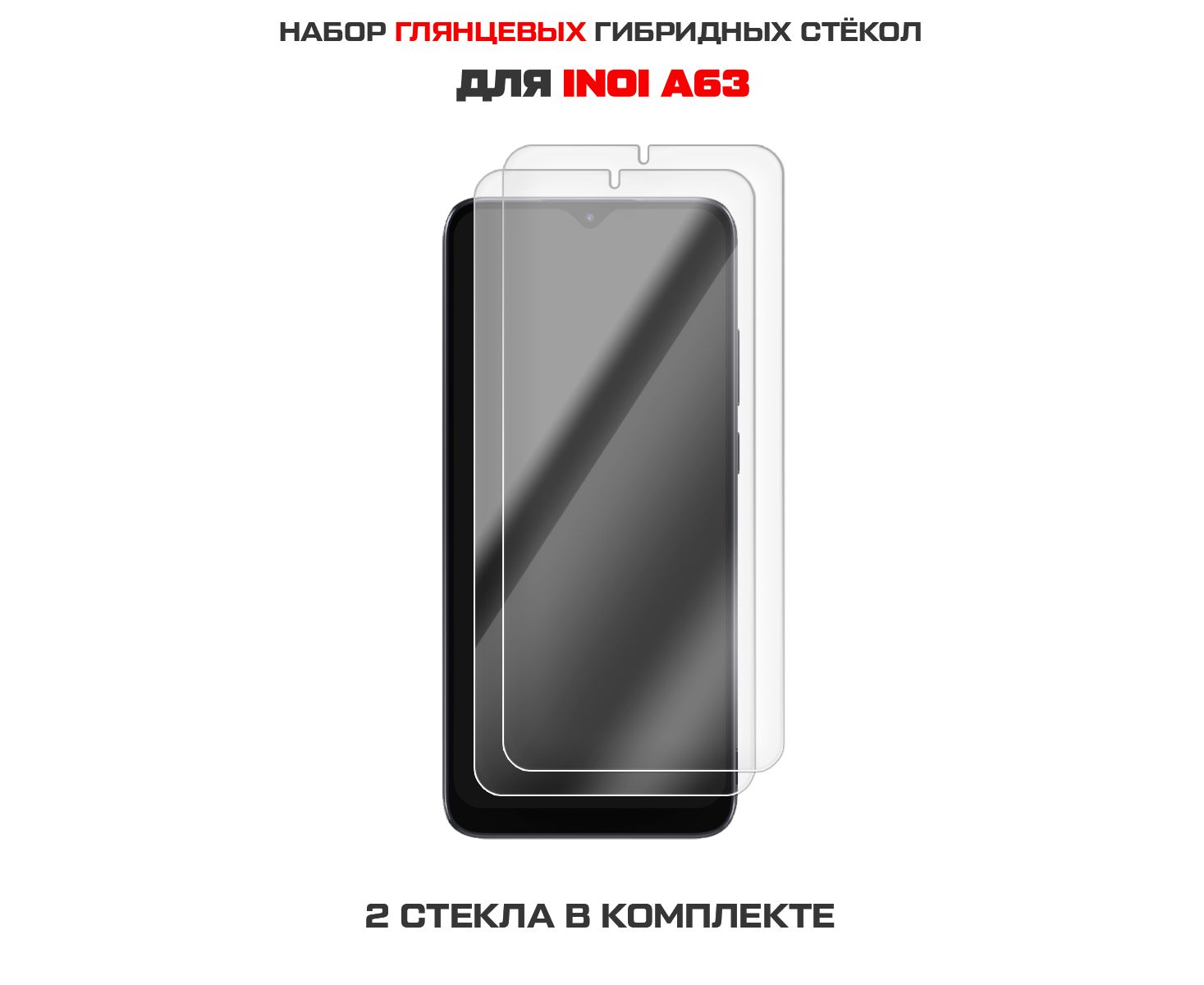 Комплект из 2-х защитных гибридных стекол Krutoff для INOI A63