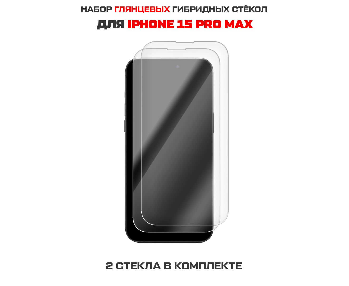 Комплект из 2-х защитных гибридных стекол Krutoff для iPhone 15 Pro Max