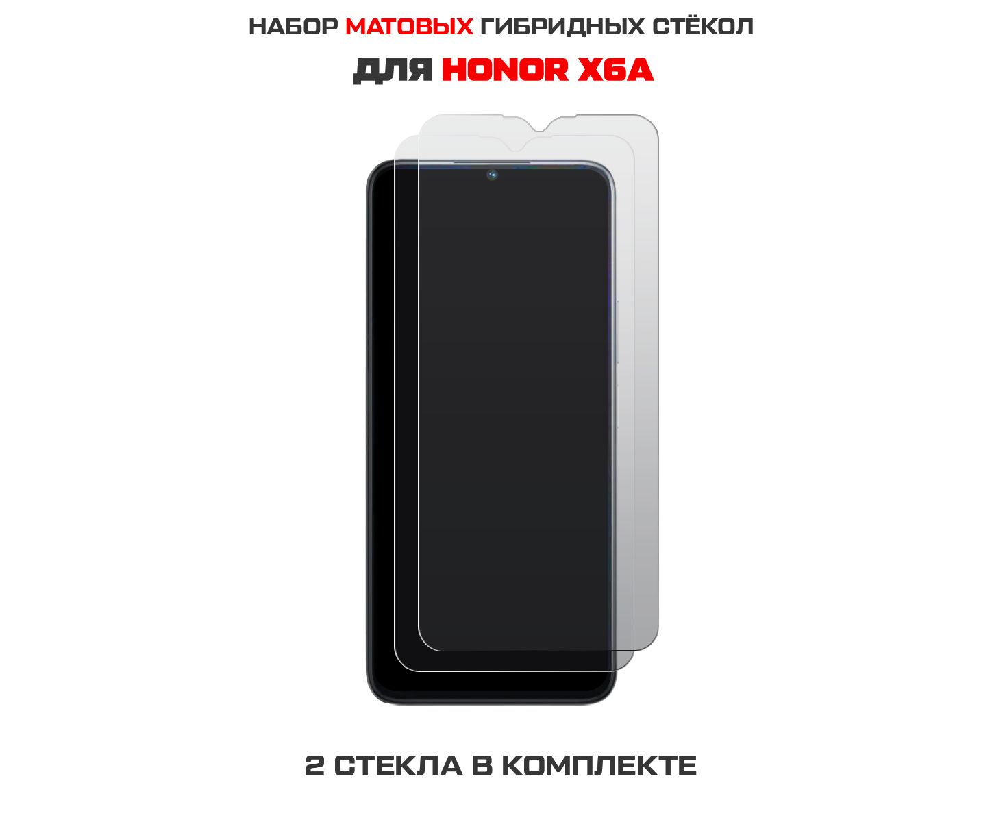 Комплект из 2-х защитных гибридных стекол МАТОВЫХ Krutoff для Honor X6a