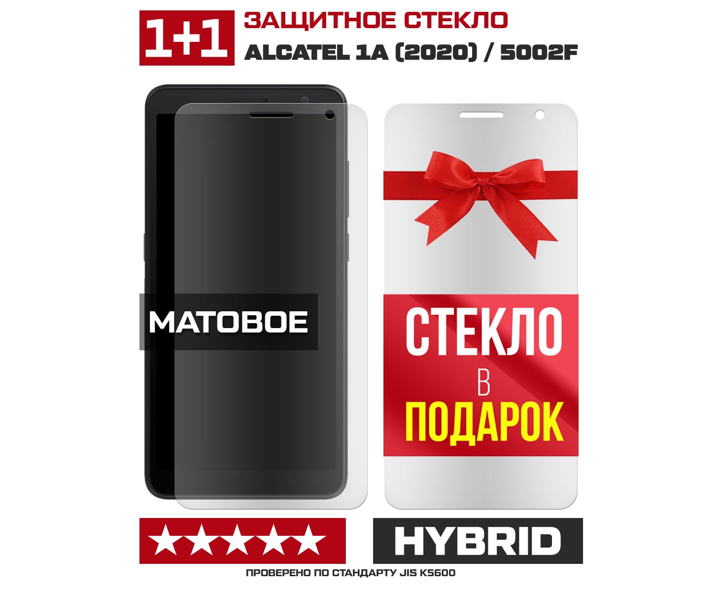 Комплект из 2-x защитных гибридных МАТОВЫХ стекол Krutoff для Alcatel 1A (2020) / 5002F