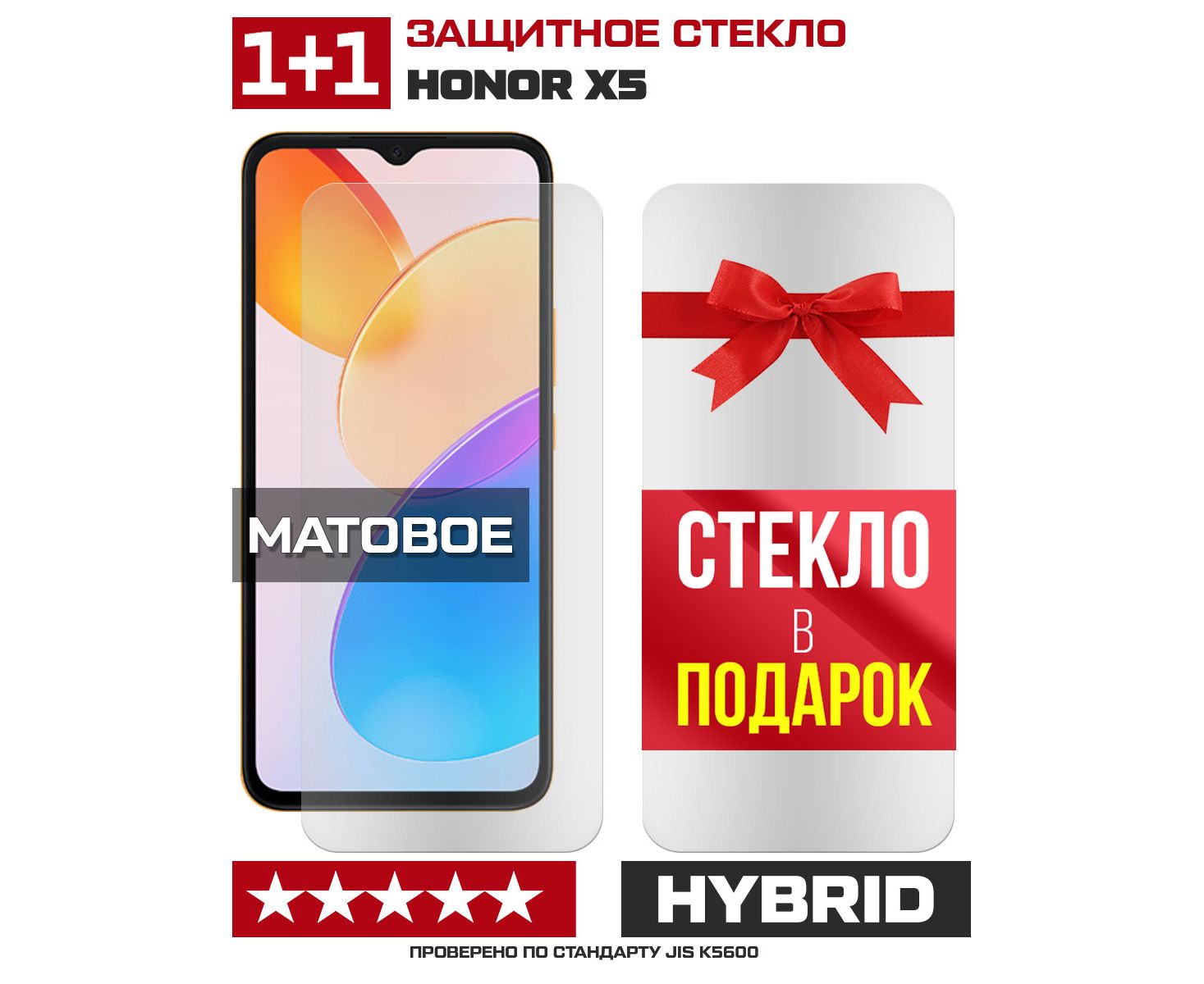 Комплект из 2-x защитных гибридных стекол МАТОВЫХ Krutoff для Honor X5