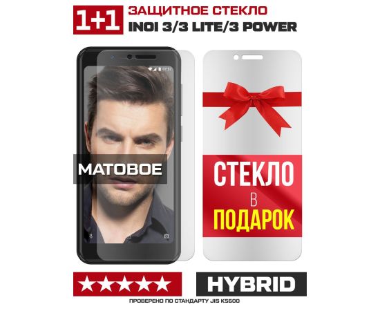 Комплект из 2-x защитных гибридных стекол МАТОВЫХ Krutoff для INOI 3/3 Lite/3 Power