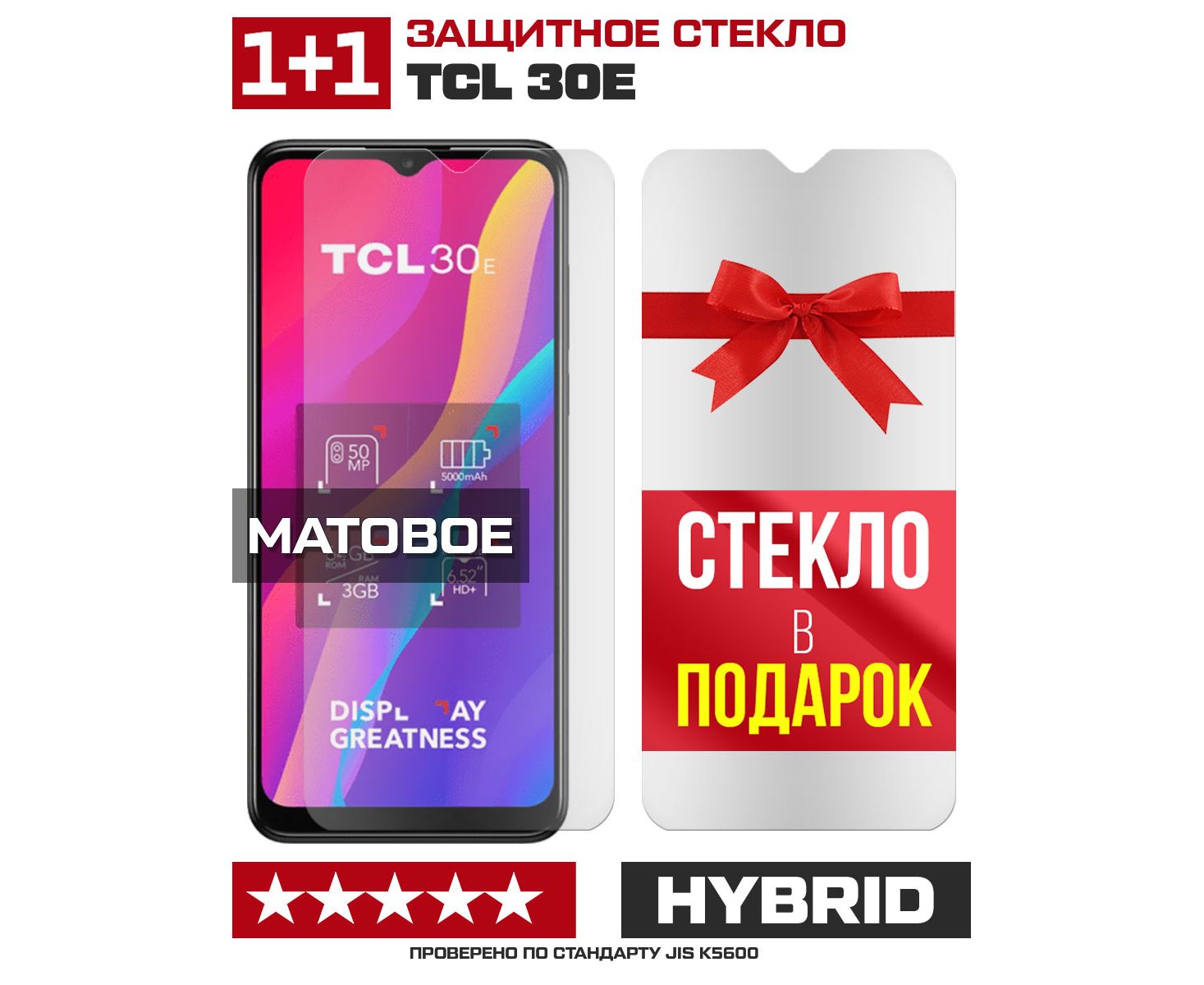 Комплект из 2-x защитных гибридных стекол МАТОВЫХ Krutoff для TCL 30E
