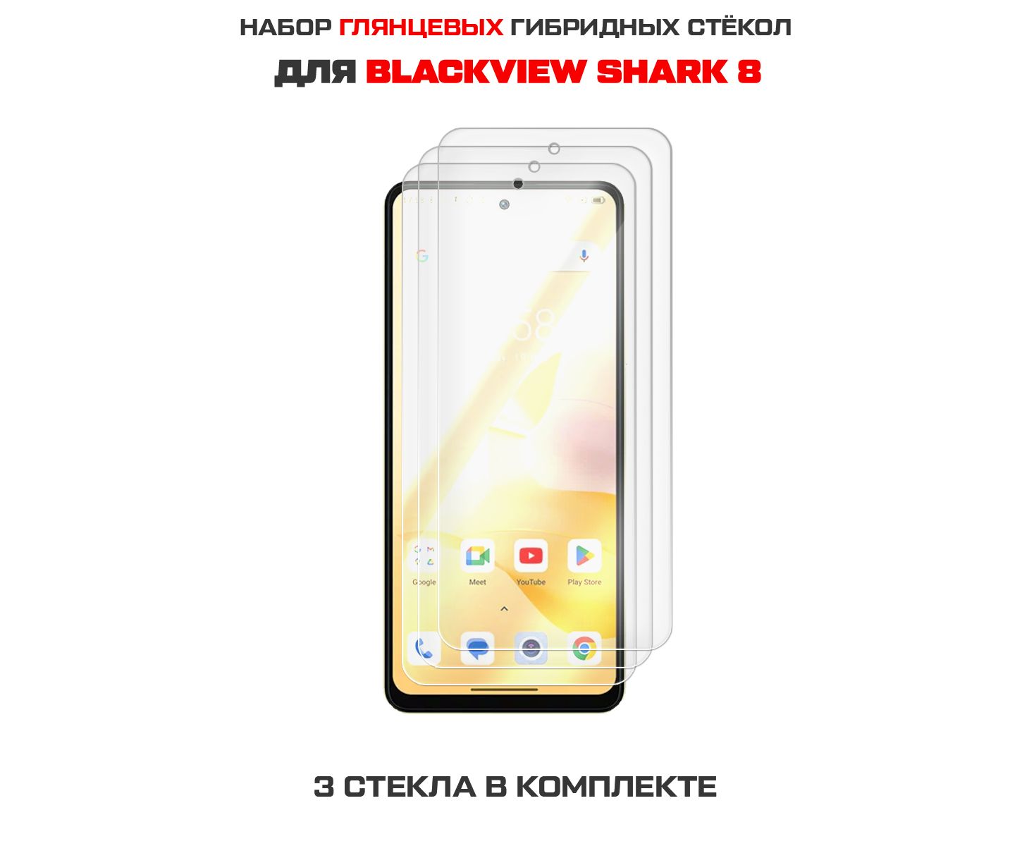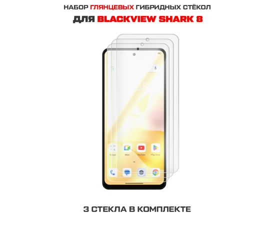 Комплект из 3-х защитных гибридных стекол Krutoff для Blackview Shark 8
