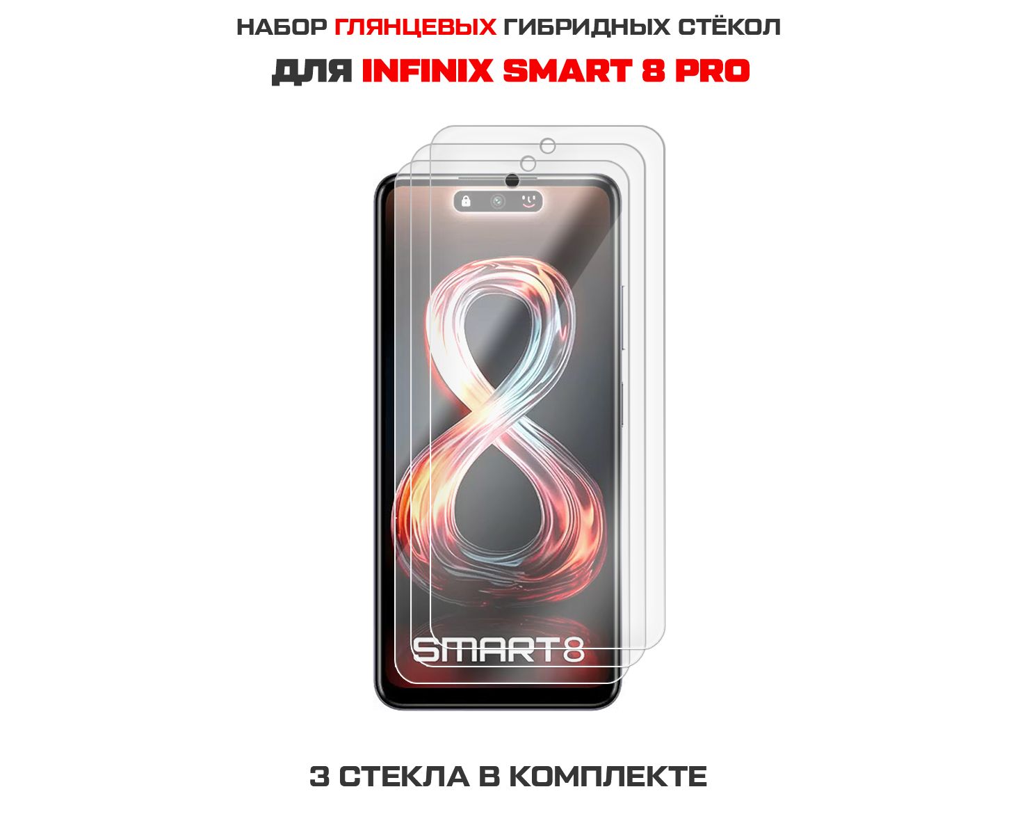 Комплект из 3-х защитных гибридных стекол Krutoff для INFINIX Smart 8 Pro